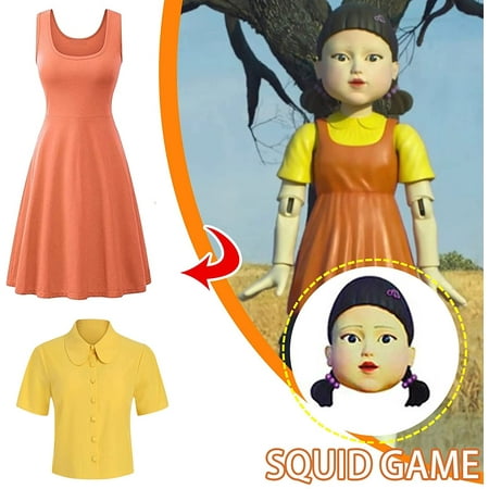 Squid Game Costume Creepy Doll Girls Outfits And Mask For Women Girls Yellow Shirts And Sun Dress Size 4 14 Us Walmart Canada